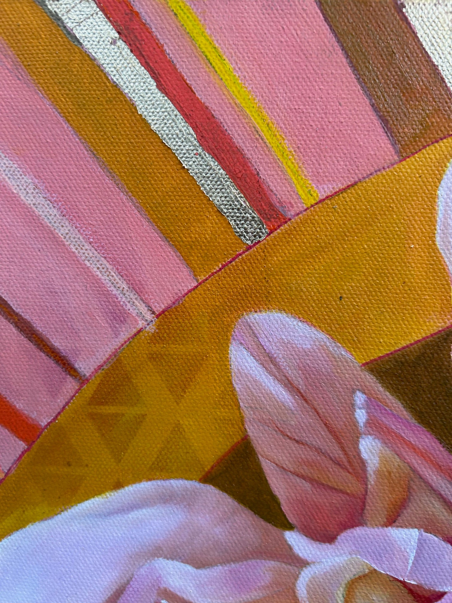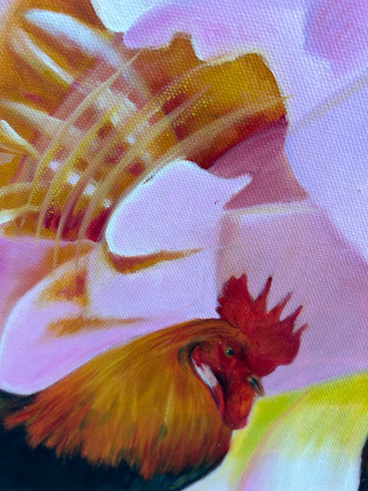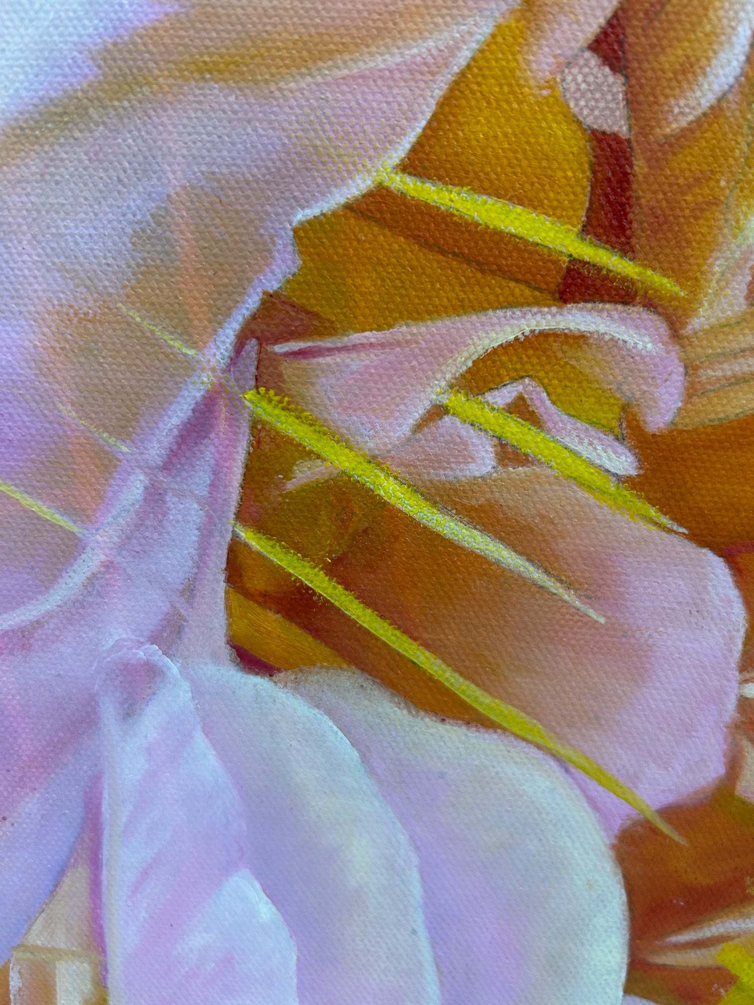 Oil painting on a mixed media background painted on canvas