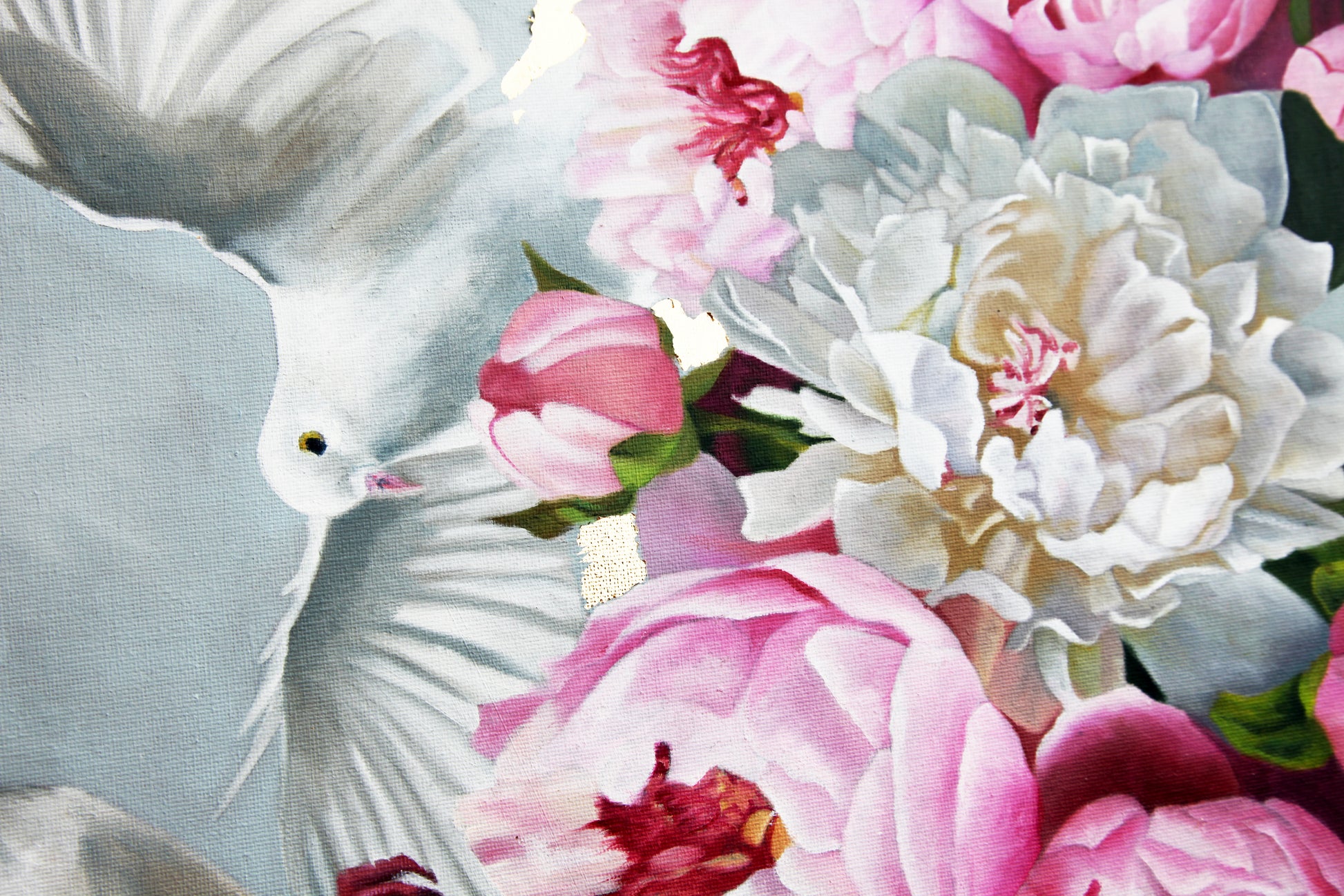 The Doves, perched among delicate pink and white peonies, symbolize peace, love, and renewal. Connected to goddesses like Aphrodite, these gentle creatures bring a message of harmony, compassion, and the enduring beauty of love.