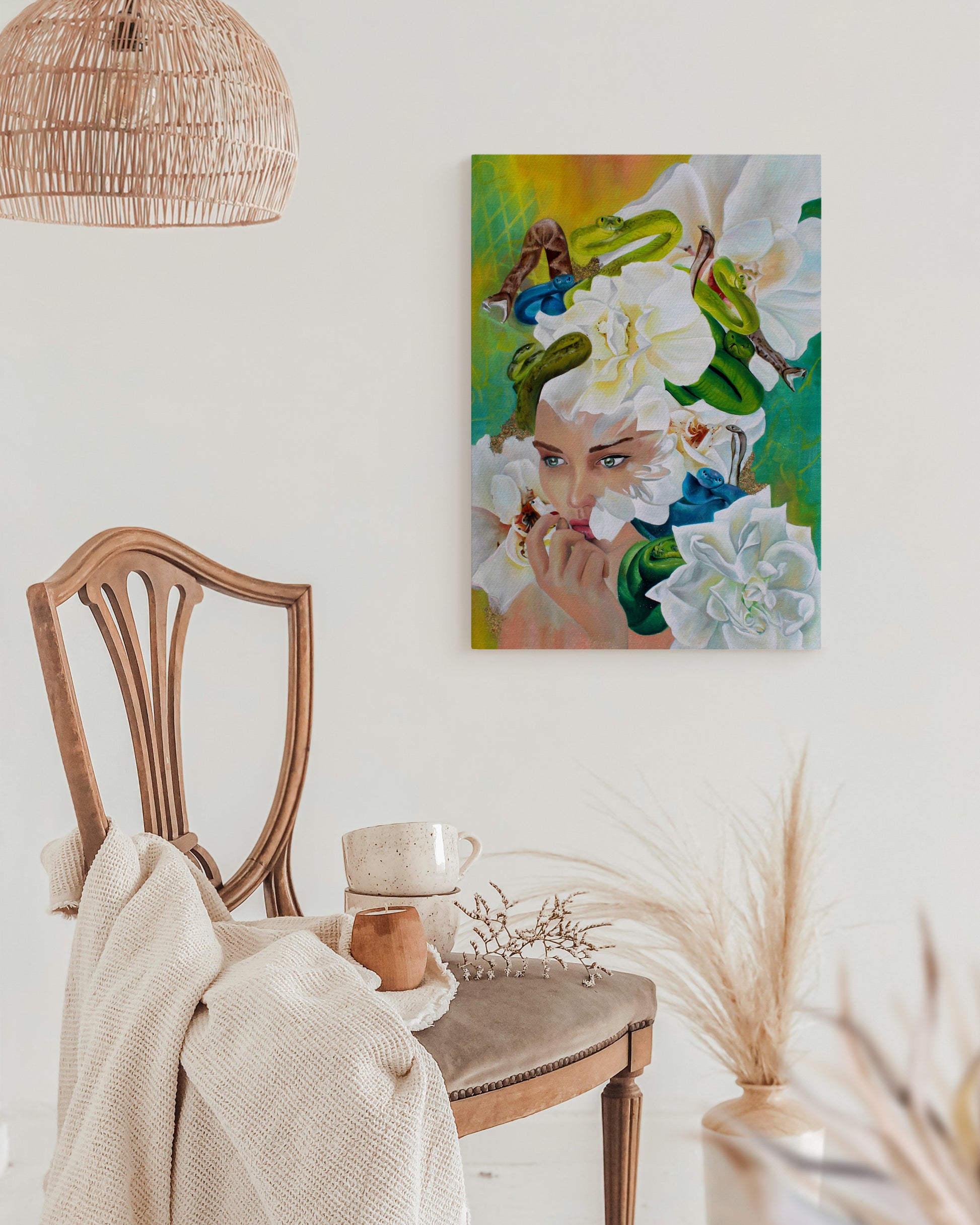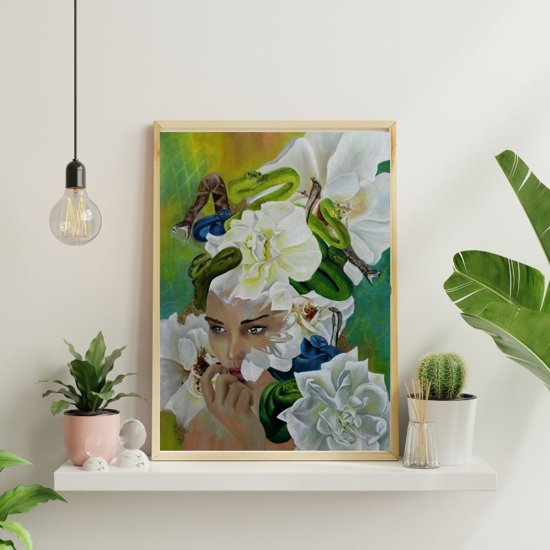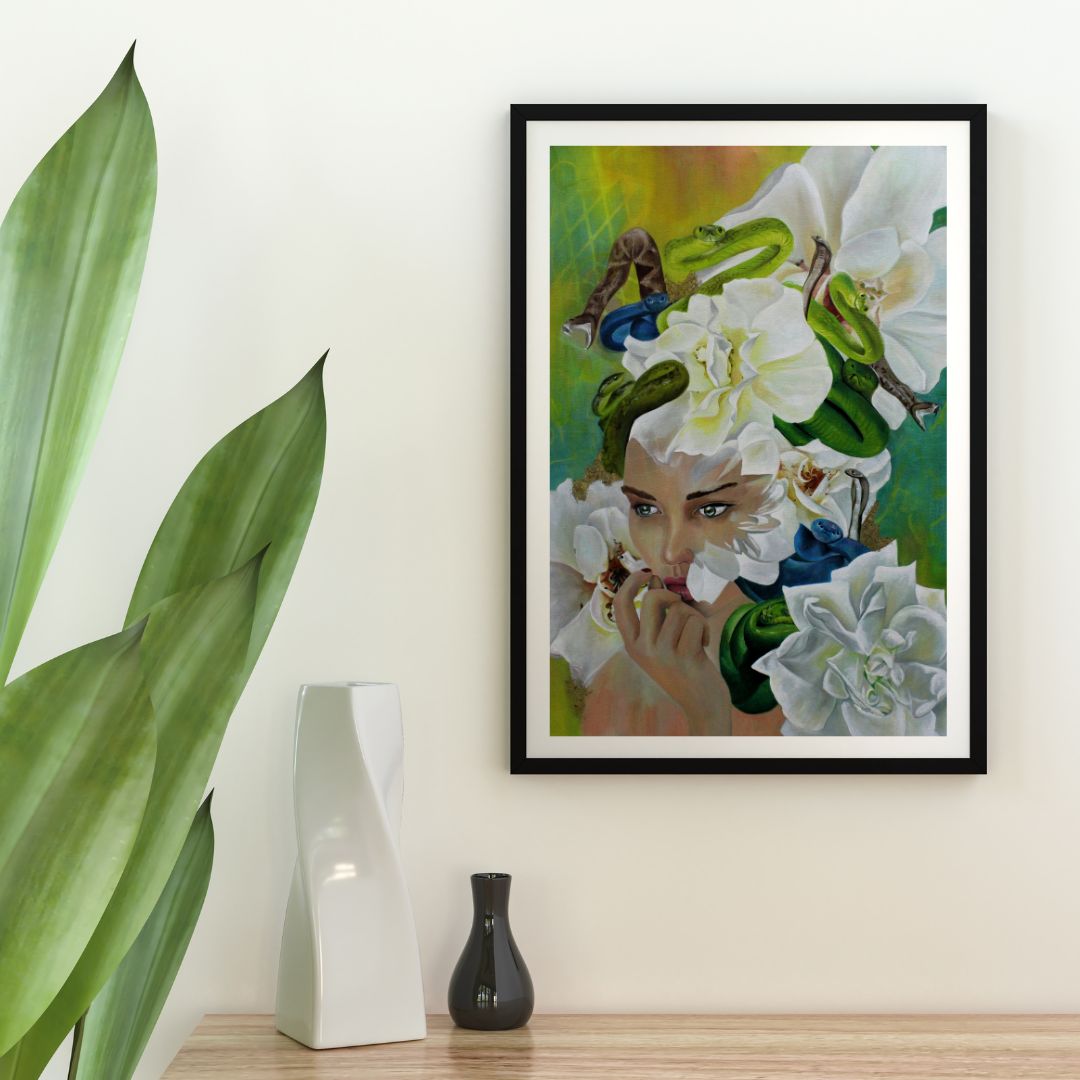 Unveil the enigma of 'Medusa'—a powerful depiction that reimagines one of mythology’s most misunderstood figures. This striking print delves deep into the complexities of Medusa, portraying her not just as a monster, but as an emblem of transformation and resilience. Crafted as a giclée print on premium 310gsm Hahnemühle German Etch paper, each piece offers the finest texture and quality. The archival pigment-based inks ensure that the haunting beauty and rich, dark tones of Medusa's tale will endure for a lifetime. Invite this mesmerizing artwork into your home and explore the profound narratives she holds.