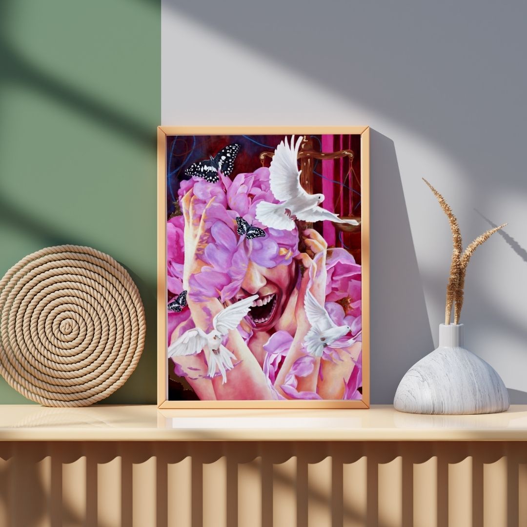 Behold 'Nemesis'—the formidable goddess of retribution and balance in Greek mythology. This powerful print captures her commanding presence and the justice she brings to the world. Each piece is a giclée print made on 310gsm Hahnemühle German Etch paper, renowned for its exceptional texture and resilience. The use of archival pigment-based inks ensures that Nemesis's divine authority is vividly preserved, offering a timeless reminder of balance and fairness in your home or office.