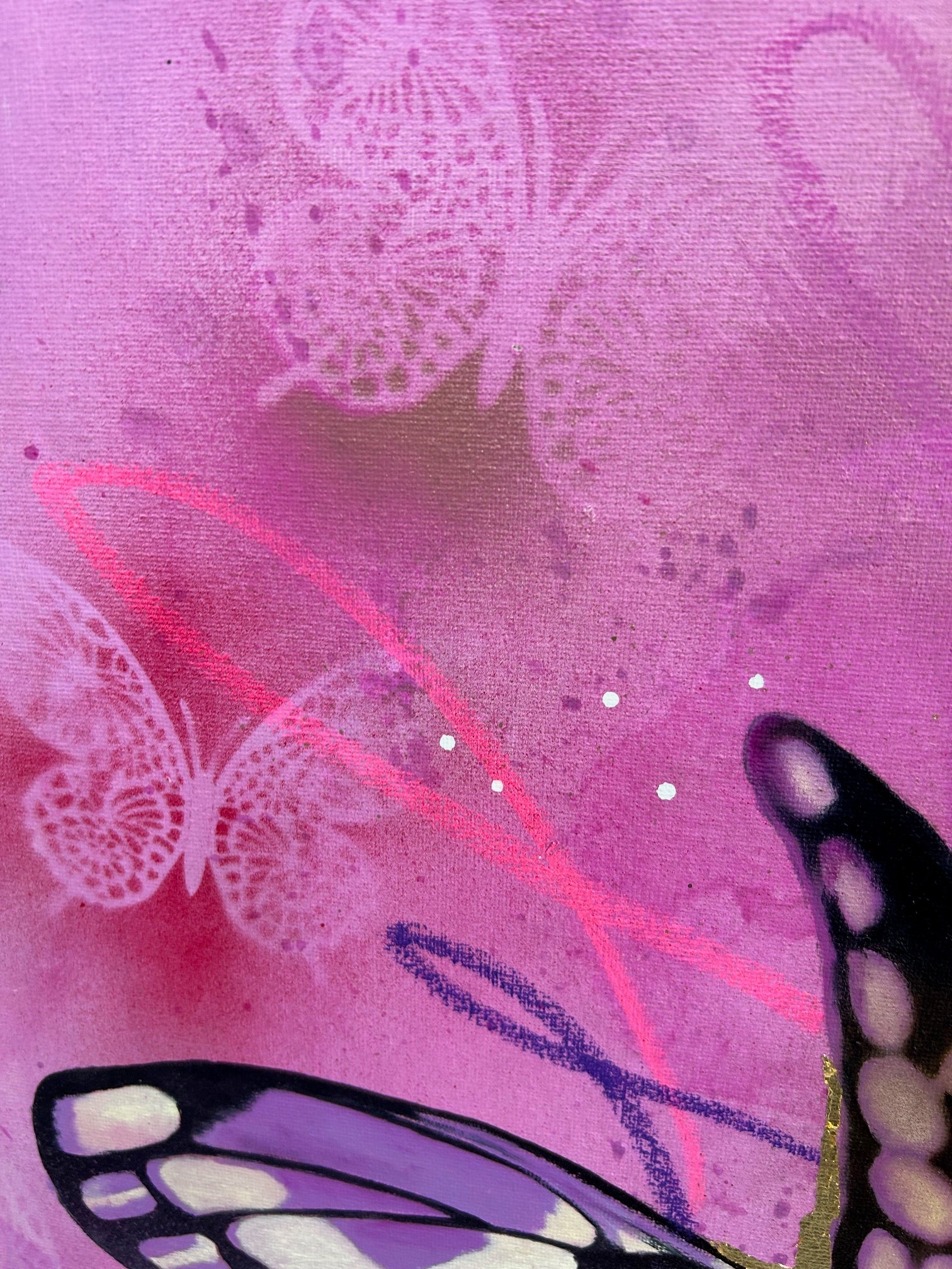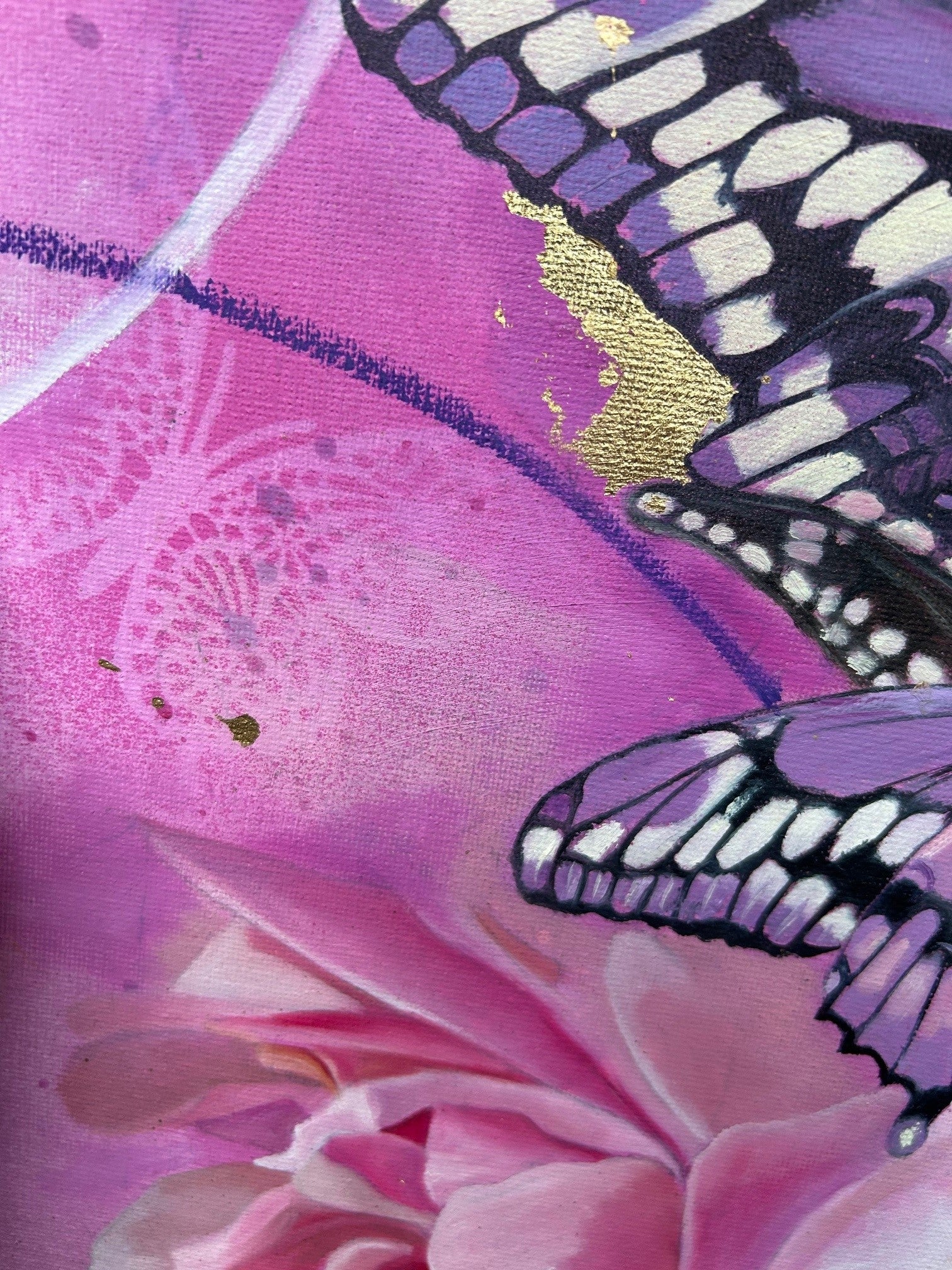 Oil painting on mixed media background painted on canvas